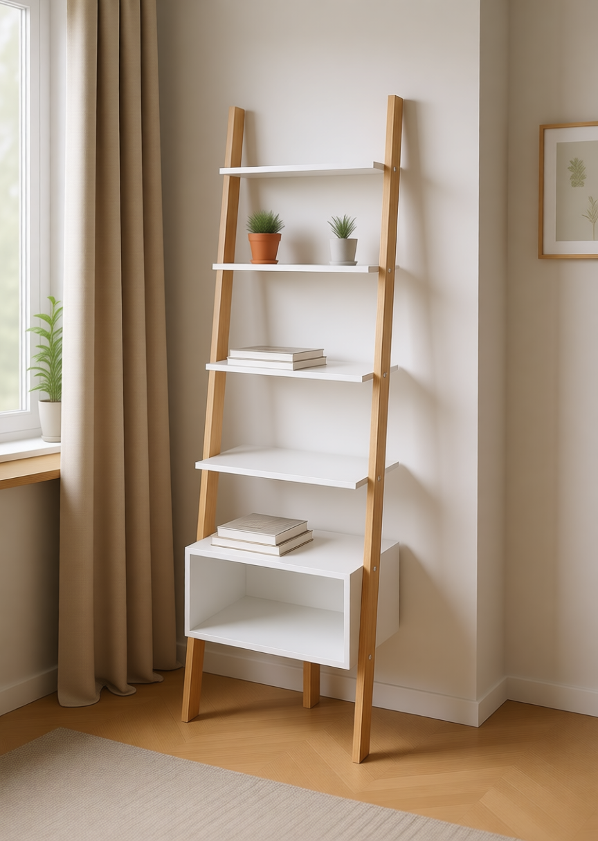 Стеллаж Vadis 4, цвет белый / светлое дерево