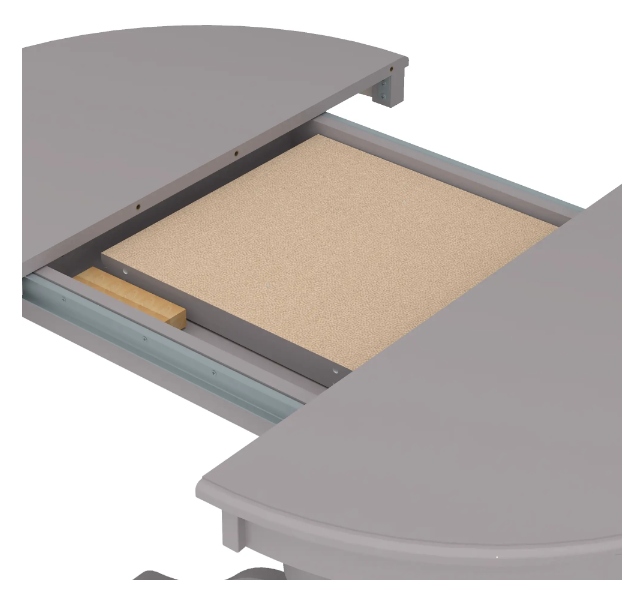 Расширительная панель складывается пополам и помещается внутрь стола;
