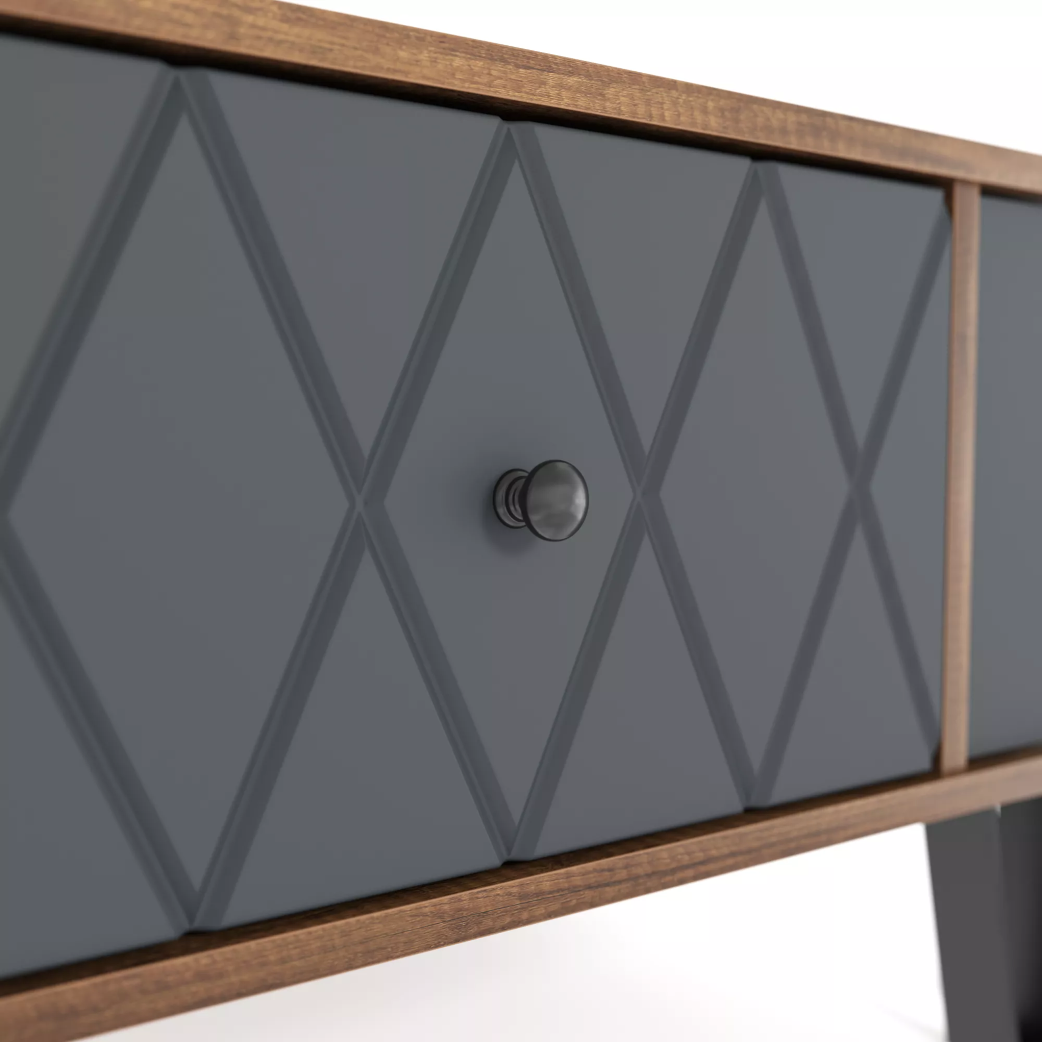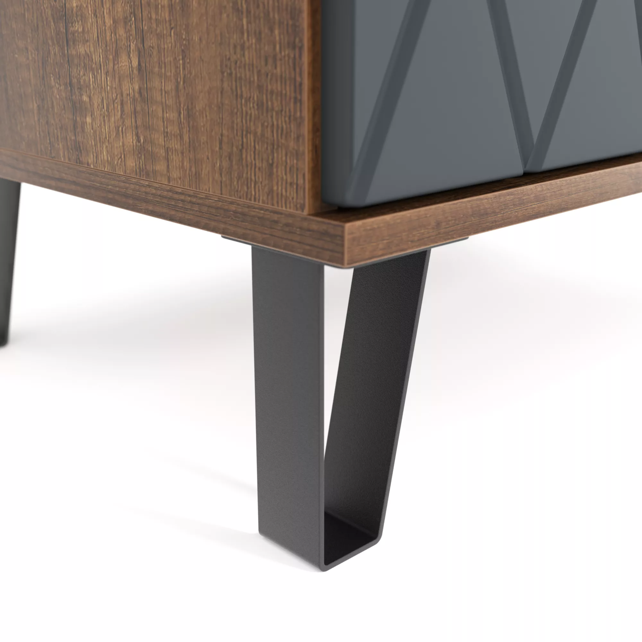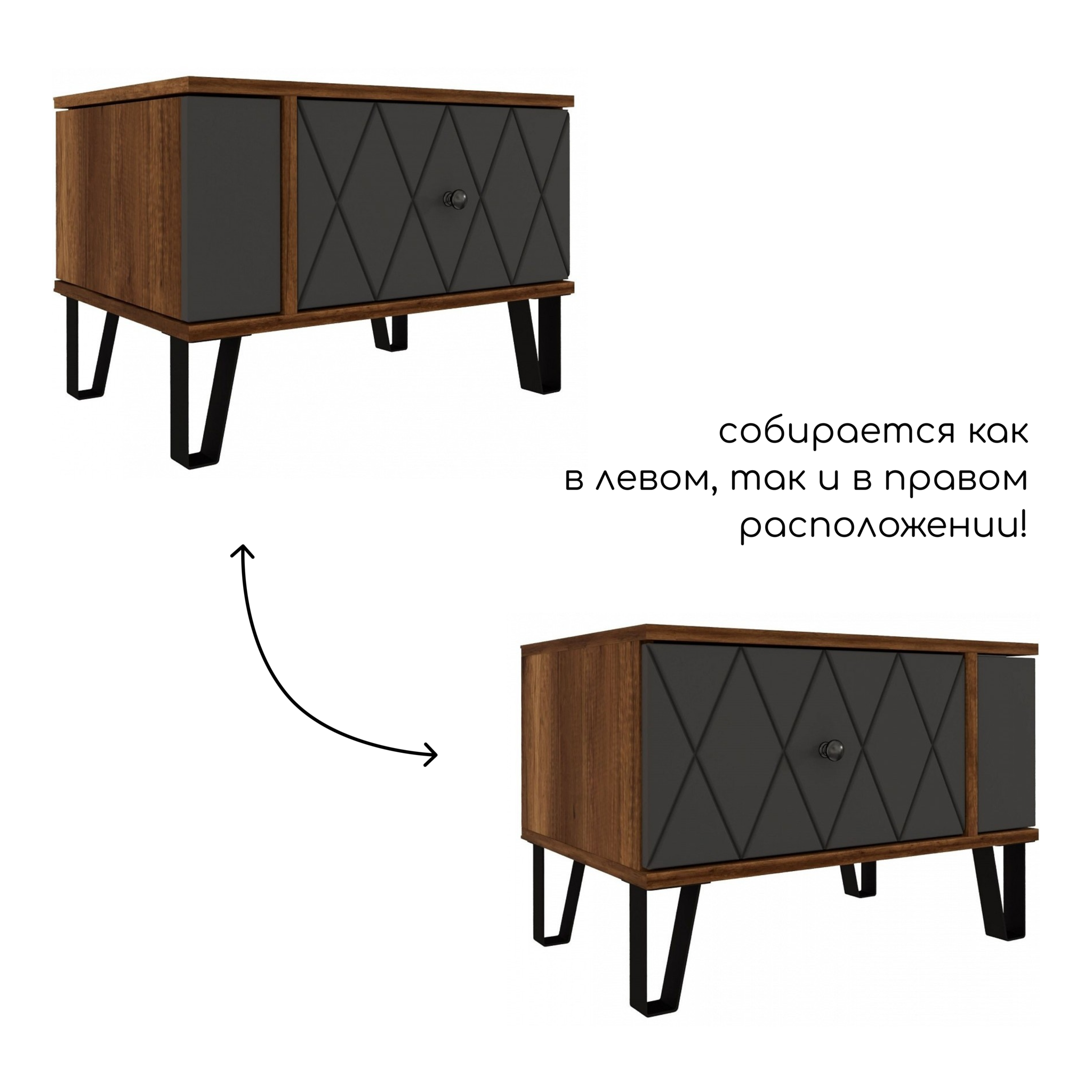 Надежная фурнитура: опоры тумбы выполнены из металла, а цвет фурнитуры – черный/хром, что добавляет изделию солидности и подчеркивает его статус.